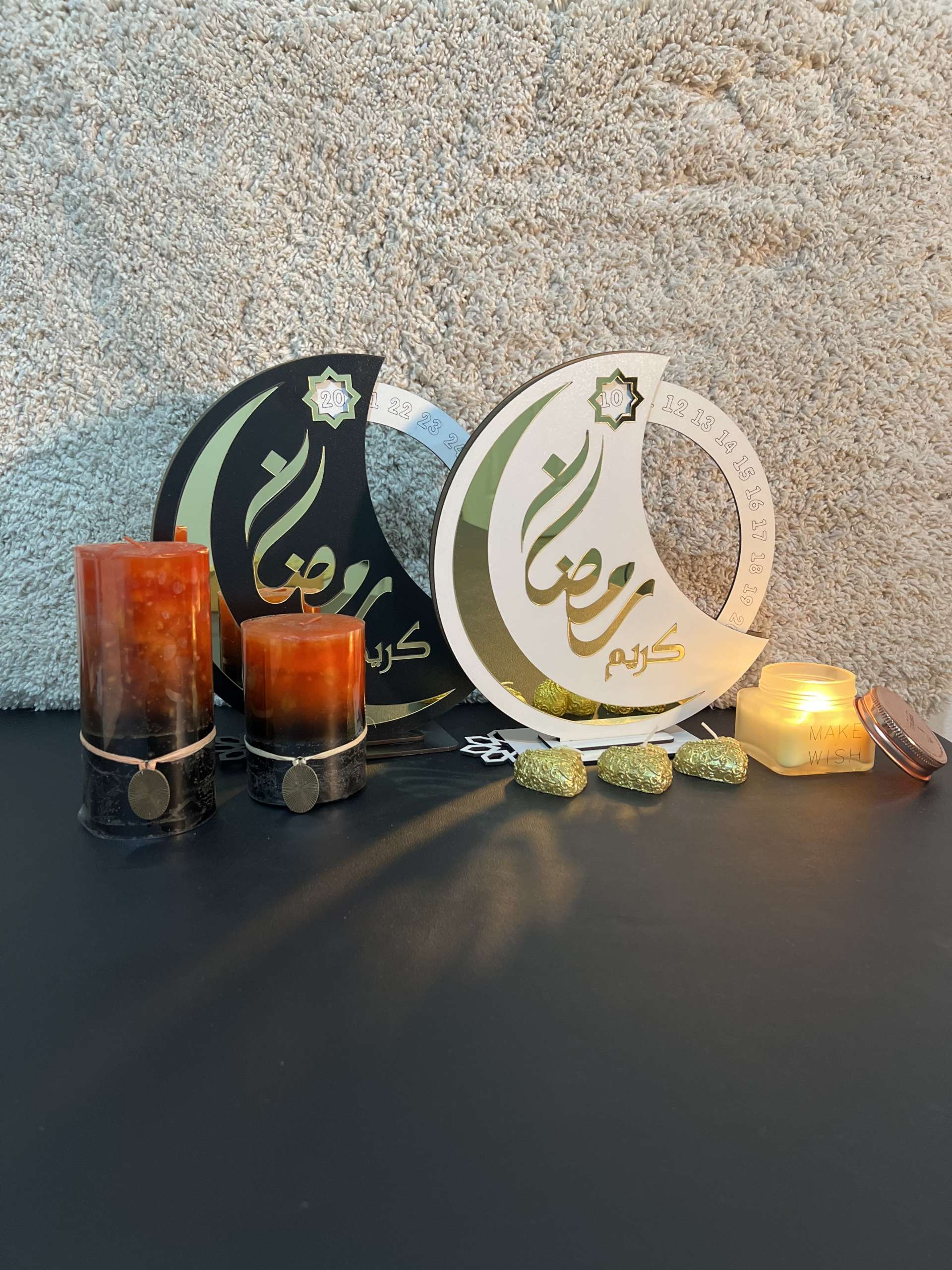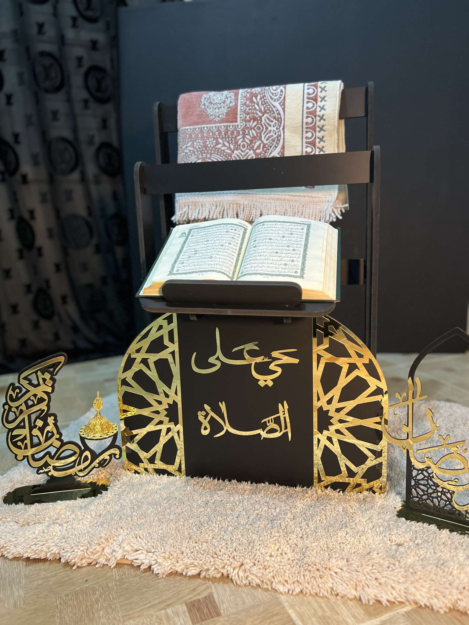 يضم ركن صلاة أنيق، رزنامة دائرية لتتبع أيام رمضان، مع ديكور طاولة رمضاني كهدية.
