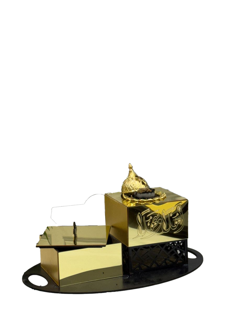 مبخرة باللون الأسود والذهبي، تصميم أنيق يضيف لمسة فخامة وأجواء راقية لبيتك، مثالية لرمضان والمناسبات الخاصة.